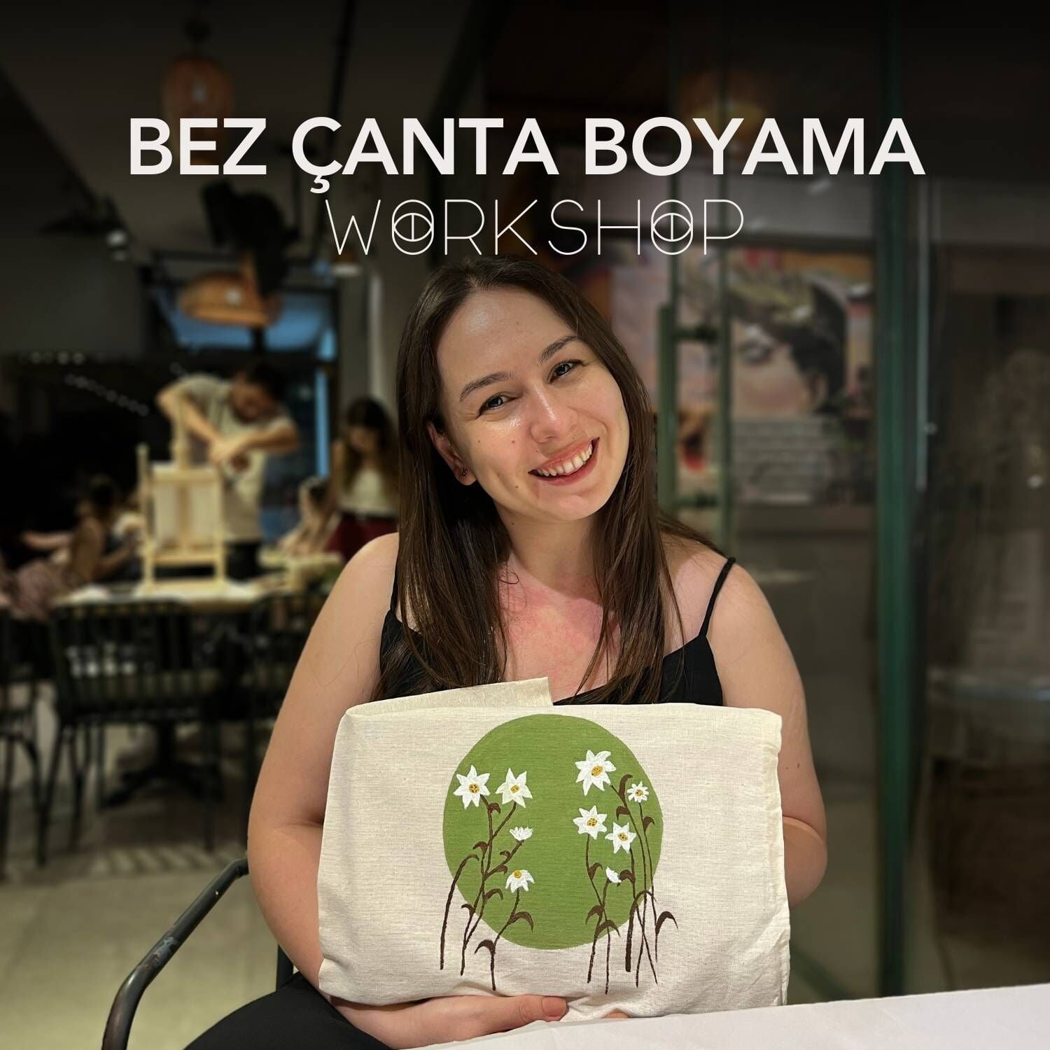 Bez Çanta Boyama Workshop etkinliklerimizde pamuklu bez çanta ve su bazlı akrilik boya kullanıyoruz. 2 saat içerisinde bez çantanıza dilediğiniz gibi seçeceğiniz kompozisyonu aktarabilirsiniz. Bunun için gerekli fırçalar vb. tüm malzemeler biletlerinize dahil. Sizden yaratıcılığınızın sınırlarını zorlamanızı beklerken; ekip olarak yardımcı da olacağız. Yetenek veya deneyime ihtiyaç bulunmuyor. Ve tüm etkinliklerde olduğu gibi çalışmanız sizin olacak. Şimdiden iyi eğlenceler! Sevgiler.