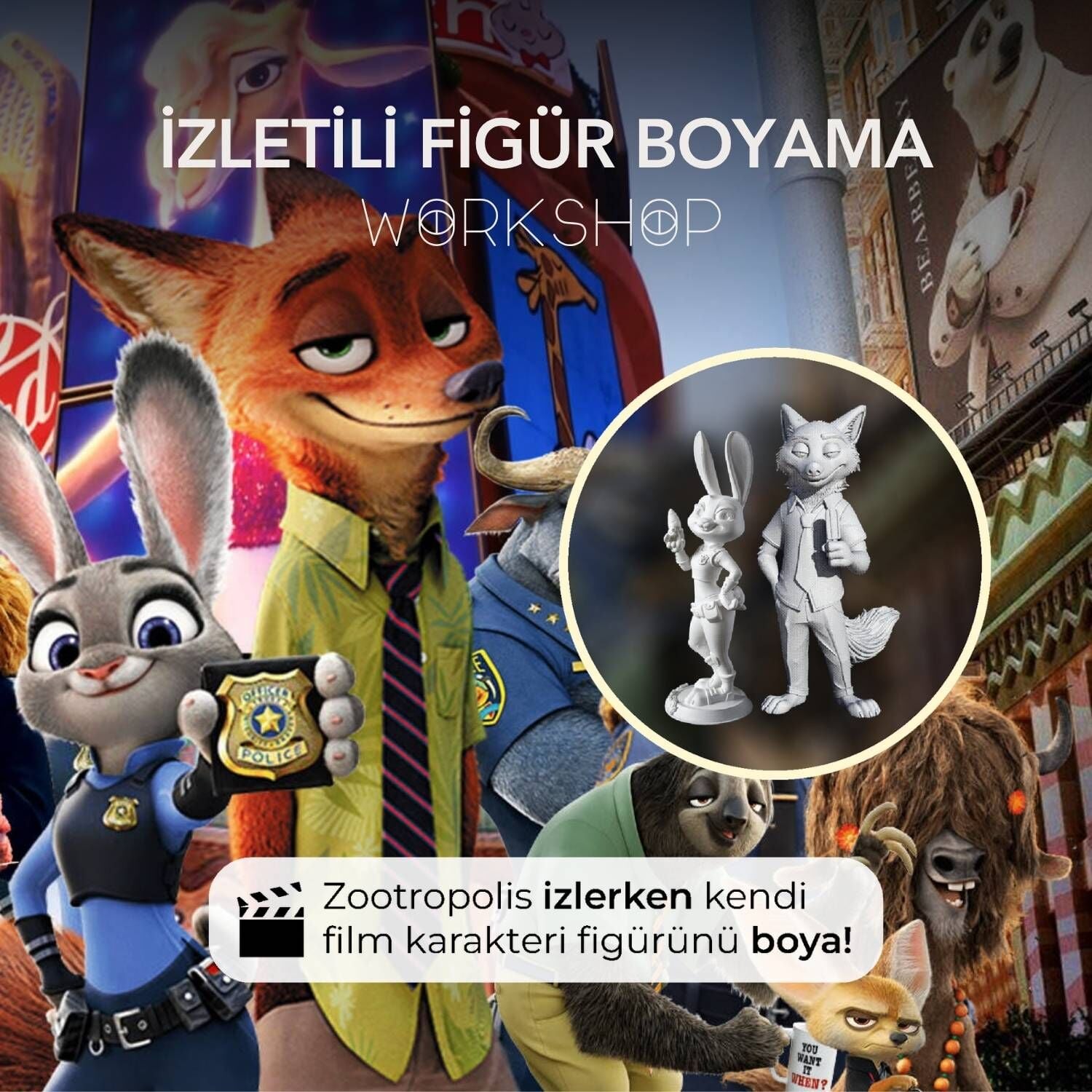 Sevdiğiniz karakterler bu kez sizin hayal gücünüzle renklenecek! Üstelik bu etkinlikte figülerimizi konsepte uygun izleti eşliğinde boyayacağız. Her etkinliğimizde olduğu gibi biten çalışmanız sizde kalacak, bu etkinliği hatırlatan şahane bir anı olacak! Gerekli tüm malzemeler biletlerinize dahil. Şimdiden iyi eğlenceler.