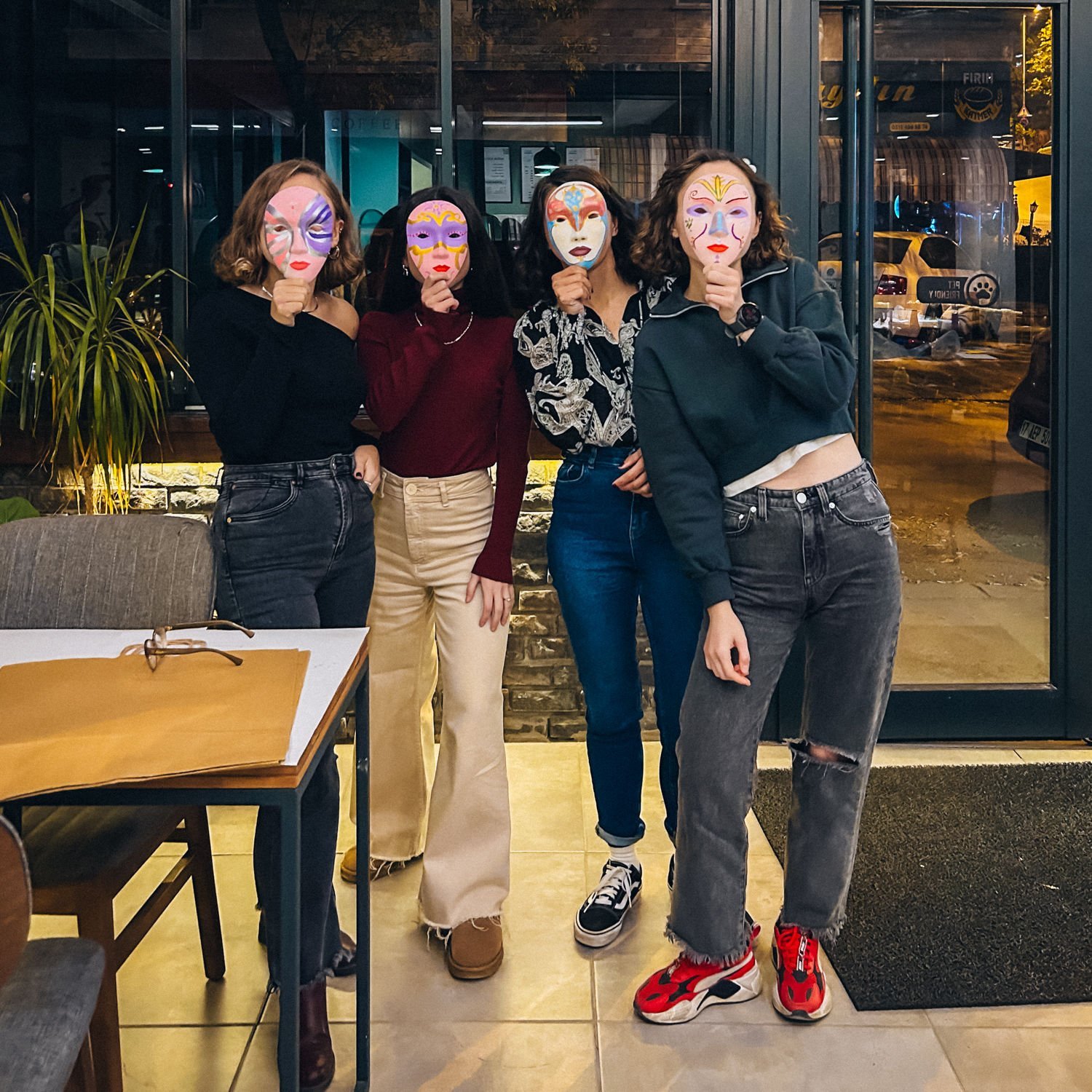 Maske Boyama Workshop etkinliklerimizde alçı döküm maske ve su bazlı akrilik boya kullanıyoruz. 2 saat içerisinde maskenize dilediğiniz gibi seçeceğiniz kompozisyonu aktarabilirsiniz. Bunun için gerekli fırçalar vb. tüm malzemeler biletlerinize dahil. Sizden yaratıcılığınızın sınırlarını zorlamanızı beklerken; ekip olarak yardımcı da olacağız. Yetenek veya deneyime ihtiyaç bulunmuyor. Ve tüm etkinliklerde olduğu gibi çalışmanız sizin olacak. Şimdiden iyi eğlenceler! Sevgiler.