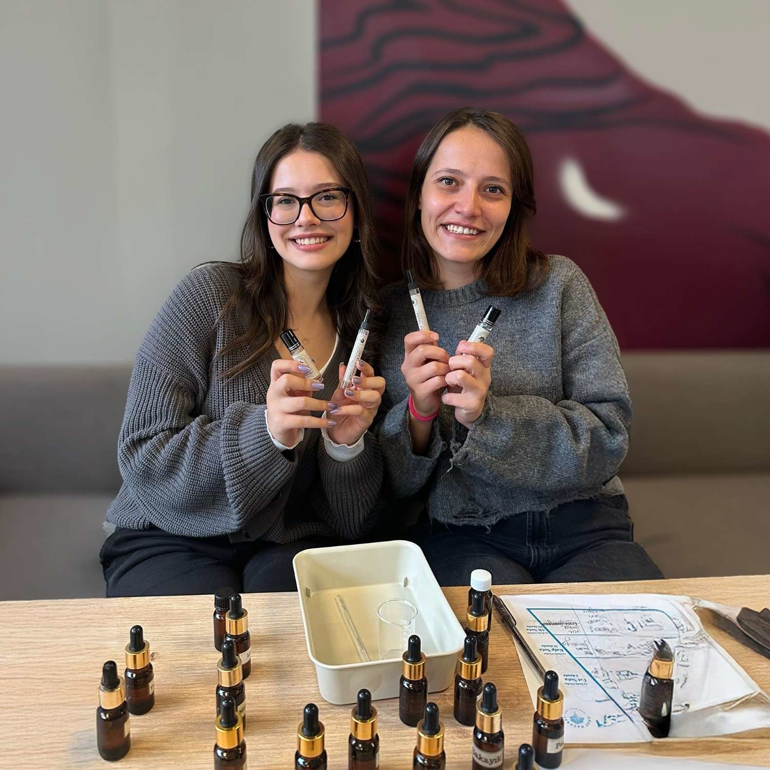 Doğal Parfüm Workshop etkinliklerimizde yağ bazlı ve alkol bazlı 10’ar mililitrelik iki farklı parfüm tasarlıyoruz. 40 farklı esansı koklayarak kendi benzersiz kokunuzu oluştururken, kişilik testi ile size en uygun notaları keşfediyorsunuz. Bunun için gerekli tüm esans vb. malzemeler biletlerinize dahil. Sizden yaratıcılığınızın sınırlarını zorlamanızı beklerken; ekip olarak yardımcı da olacağız. Yetenek veya deneyime ihtiyaç bulunmuyor. Ve tüm etkinliklerde olduğu gibi yaptığınız parfümler sizin olacak. Şimdiden iyi eğlenceler! Sevgiler.