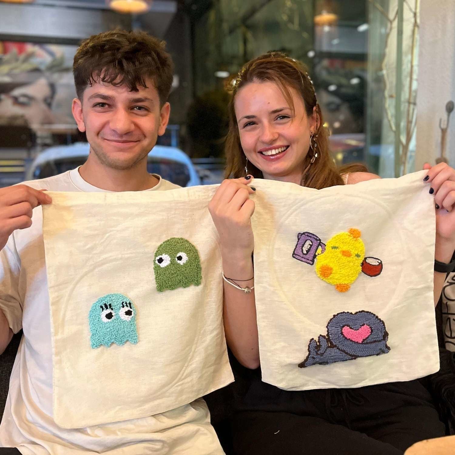 Punch Workshop etkinliklerimizde bez çanta ve yün kullanıyoruz. 2 saat içerisinde daha öncesinde hazırlanmış şablonlar arasından dilediğinizi seçerek bez çantanıza punch iğnesi ve yünlerle desen işleyebilirsiniz. Etkinlik sırasında, punch tekniği hakkında temel bilgilere sahip olacak ve bu teknikle ilgili pratik yapma fırsatınız olacak. Bunun için gerekli punch iğnesi vb. tüm malzemeler biletlerinize dahil. Sizden yaratıcılığınızın sınırlarını zorlamanızı beklerken; ekip olarak yardımcı da olacağız. Yetenek veya deneyime ihtiyaç bulunmuyor. Ve tüm etkinliklerde olduğu gibi çalışmanız sizin olacak. Şimdiden iyi eğlenceler! Sevgiler.