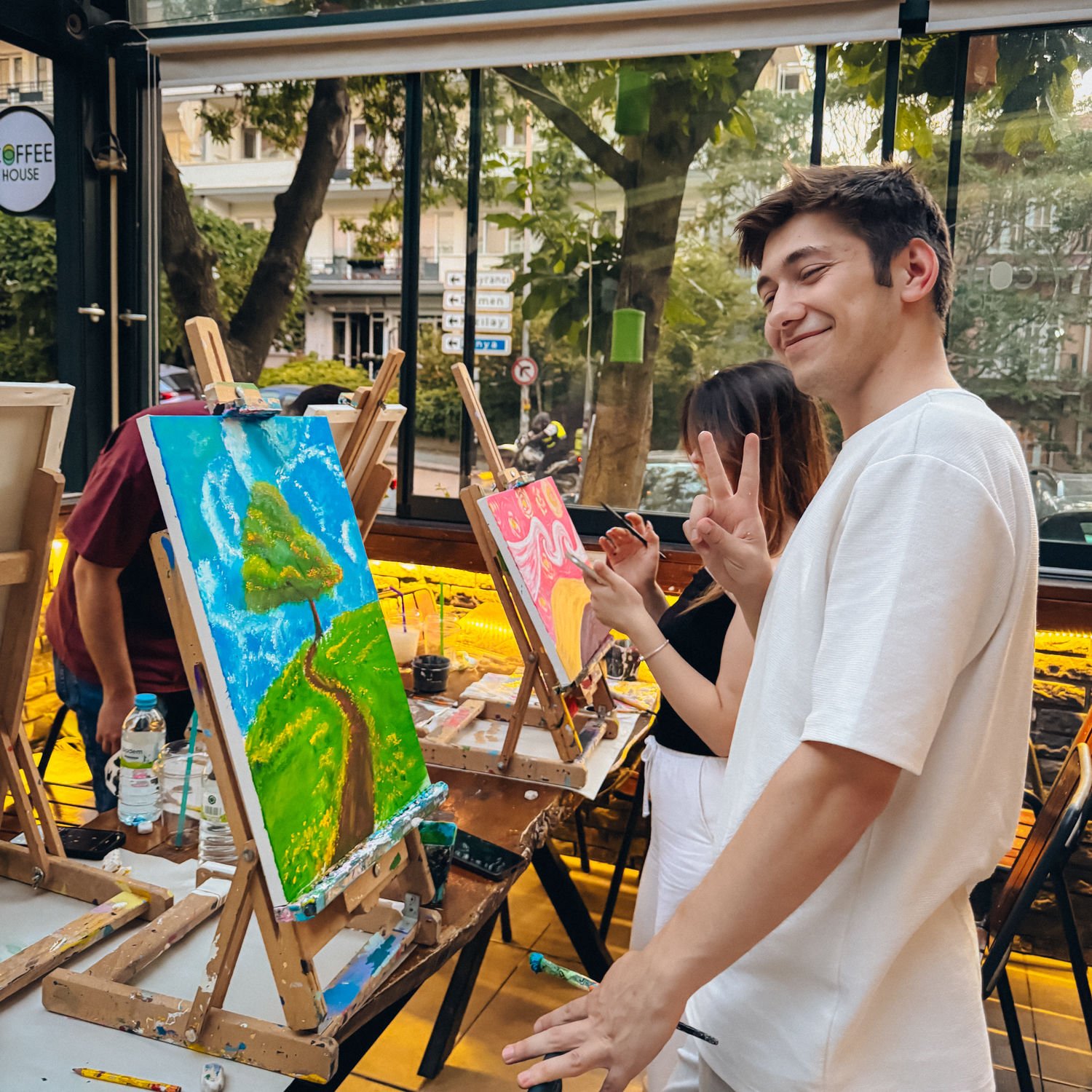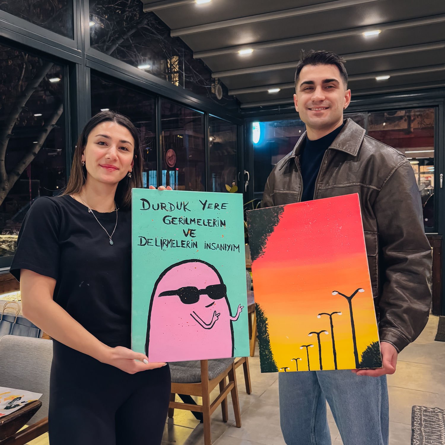 Resim Workshop etkinliklerimizde canvas tuval ve su bazlı akrilik boya kullanıyoruz. 2 saat içerisinde tuvalinize dilediğiniz gibi seçeceğiniz kompozisyonu aktarabilirsiniz. Bunun için gerekli fırçalar vb. tüm malzemeler biletlerinize dahil. Sizden yaratıcılığınızın sınırlarını zorlamanızı beklerken; Yetenek veya deneyime ihtiyaç bulunmuyor. Ve tüm etkinliklerde olduğu gibi çalışmanız sizin olacak. Şimdiden iyi eğlenceler! Sevgiler.