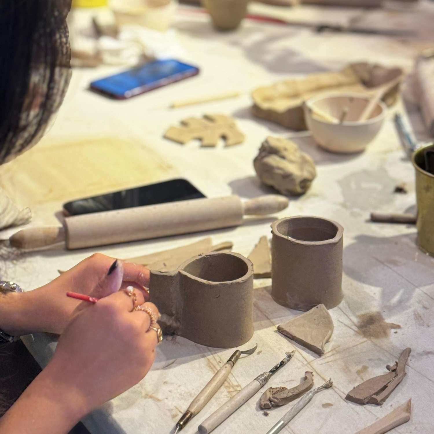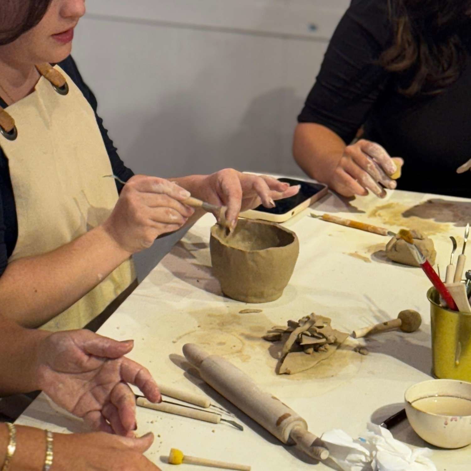 Seramik Workshop etkinliklerimizde beyaz seramik kili kullanıyoruz. 2 saat içerisinde kupa, mumluk veya sunum tabağı oluşturabilir, dilediğiniz gibi kişiselleştirebilirsiniz.