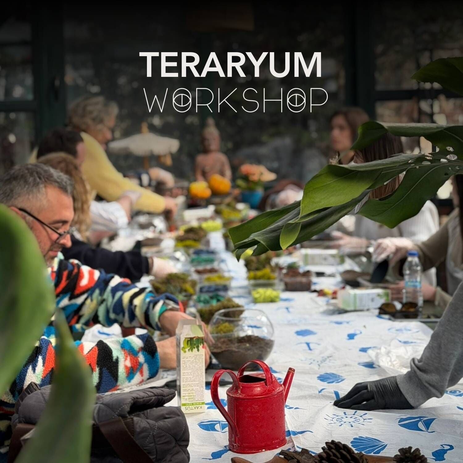 Teraryum Workshop etkinliklerimizde cam fanus, canlı bitkiler ve doğal malzemeler kullanıyoruz. Yaklaşık 2 saat içerisinde kendi mini teraryum ekosisteminizi dilediğiniz gibi tasarlayabilirsiniz. Teraryum Workshop boyunca toprak, taş, bitki ve dekor seçimlerini tamamen kendi zevkinize göre yapabilirsiniz. Teraryum Workshop için gerekli tüm malzemeler biletlerinize dahildir. Teraryum Workshop etkiliğimiz boyunca temel bilgileri paylaşırken, her aşamada size eşlik edeceğiz ve teraryum ürününüz sizde kalacak!